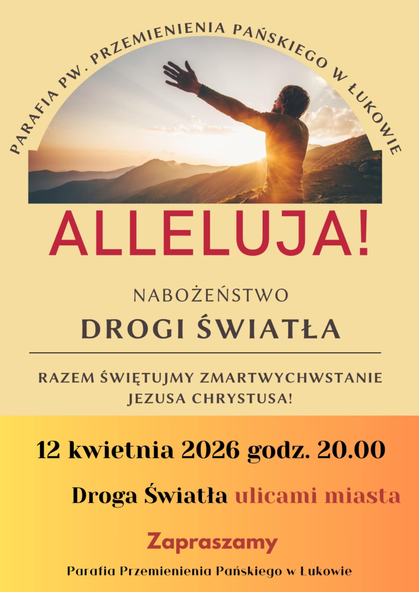 Strona główna Aktualności Zapraszamy bardzo serdecznie na Nabożeństwo Drogi Światła Zapraszamy bardzo serdecznie na Nabożeństwo Drogi Światła
